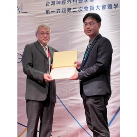 傑出論文優勝得獎者獲臺灣神經外科醫學會理事長賴達明醫師頒獎與合影